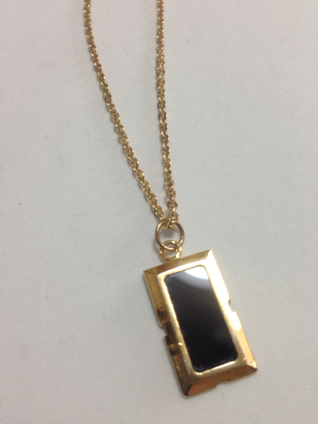 オニキスのゴールドカラーのロングペンダントネックレスです、トップのサイズは20×12ミリ、長さは57センチです★ 送料は120です