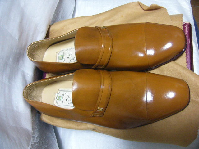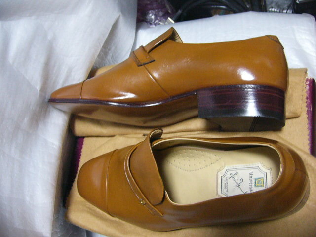 ■写真の通り、ユニバーサル キャメル ロミフェルナルド 革靴 25cm サイズ7 の未使用品新品(試着有、元箱有)です。素材はレザー となります。
