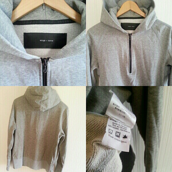 カナダ発 Wings+horns 杢グレー ハーフジップパーカーになります。