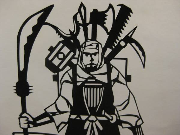 立つ切り絵 弁慶 七つ道具 壁飾りにも