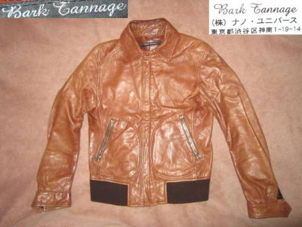 激安! ナノユニバース Bark Tannage 本革レザージャケット 茶 36 羊革 SHEEP SKIN