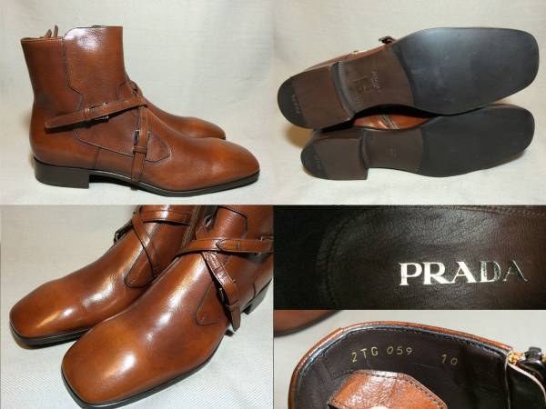 新品、プラダのサイドジップベルトレザーブーツです。