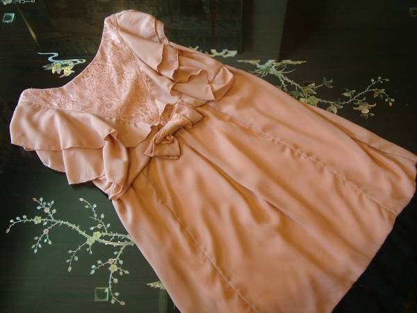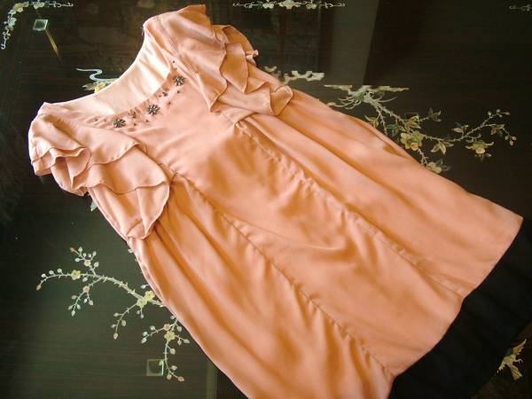 9号 シフォン ビジュー レース ワンピース ピンク フリル su168