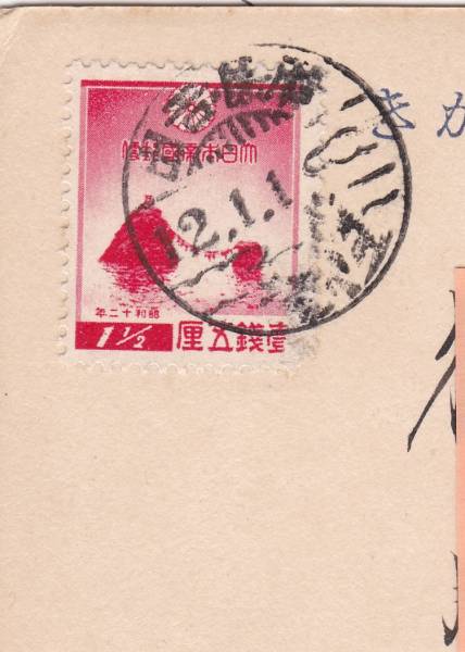 t2329★年賀櫛型印/廣島・吉田12.1.1夫婦貼