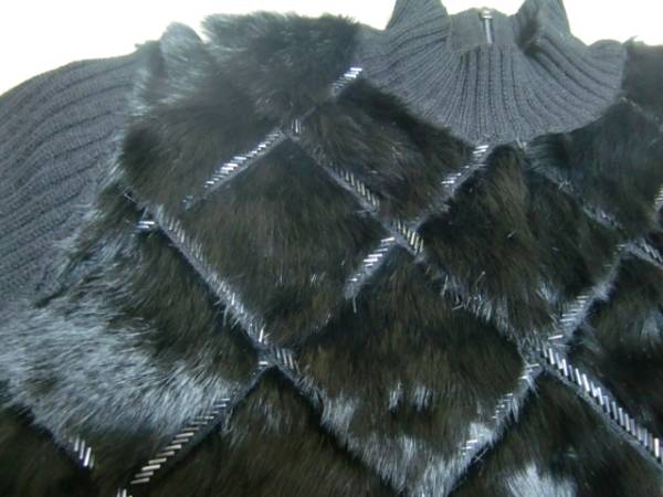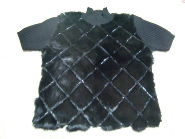 | USED美品★ファー&ビーズ半袖プチハイネックセーター黒 Mサイズ | |||