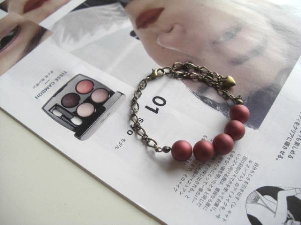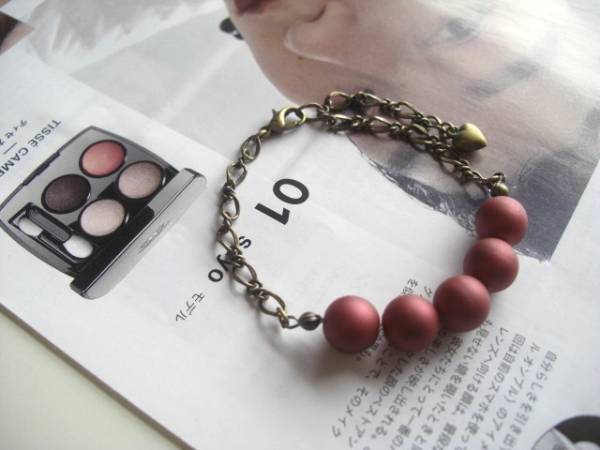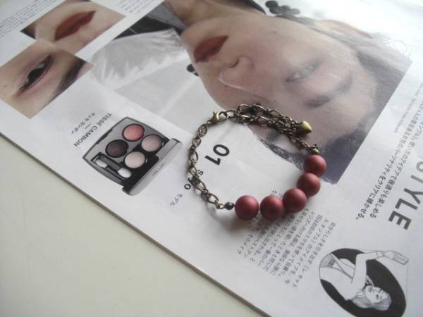 特別な一日・・シリーズです♪赤いルージュの女の子・・シックなダークレッドの樹脂パールのブレスレットです♪つや消しの柔らかで深い赤の樹脂パールにデザ インチェーンを合わせて大人のロマンチックしています♪つや消し樹脂パールは10ミリ、14ミリの丸玉です♪長さは全長23センチ位で調節自由です♪お揃いのネックレスやイヤリングも出品しています♪シンプルで飽きのこないいつまでも着けられるデザインを考えて作り まし た!ハンドメイドをご理解頂いてノークレーム、ノーリターンでお願いします