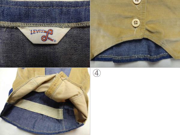 ビンテージ LEVIS リーバイス 希少 70S インディゴ デニム ベロア 切り替え レア デザイン ベスト ジレ ベージュ ベルベット 色 スリム ?