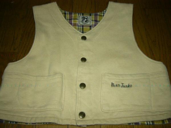| ☆ ジュンコ コシノのベストです。男の子用です。季節の変わり目などにどうぞ。 ベストとか、薄手のパーカーなどはあるととっても便利だと思います。重宝をします ☆ (色) ベージュ系?薄めのカーキ? (サイズ) 120cm (素材) 綿 100% (製造) フーセンウサギ / 日本製 / ジュンコ・コシノ (デザイン) → 布地の厚さは、普通よりかは少し厚手の部類に入ると思います。 季節の変わり目など向いていると思います。ちょっと寒いかなとか思う時にどうぞ。 ベストを1枚着るだけでも、随分と変わりますからね。サイズは、120cmですが 110cmの子にもどうぞ。真ん中はスナップボタンになっています。裏地の色合いが とてもいい感じだと思います。リハーシブルで着られます。写真に撮りますね。 僕の好みかママの好みで着て下さい。全体にカジュアルな 感じです。ジーンズに合うと思います。ママのセンスで格好よく着させてあげて下さいね。 (状態) → 中古です。少し、洗濯感がありますが → 綿なのでしょうがないです。 全体的には、中古としたら綺麗な方だと思います。まだまだ、十分に着られます。 アイロンをかけてから、ちゃんとたたみ発送を致します。 (総丈) 37、5cm (肩幅) 33、4cm (脇の下~脇の下、片側) 43、3cm (首周りの横幅) 19、3cm (首周りの深さ) 7cm |