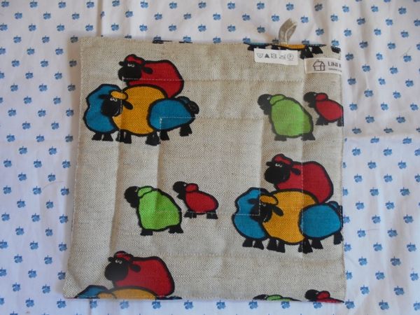 商品説明 新品★ひつじの鍋敷き、ポットホルダー★リネン 23×23