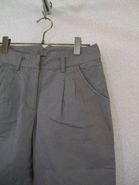 | 商品紹介 | 少しグレーが混ざったようなくすんだカーキのハーフパンツです。 ウエストの後ろ中央が少し長い形になっていて、後ろ中央のベルト通しが クロスに付いています。 スソは折り返しのデザインです。 フロントは左右2本ずつタックが入っています。 《素材》 綿100% |
