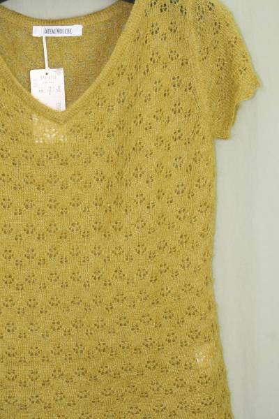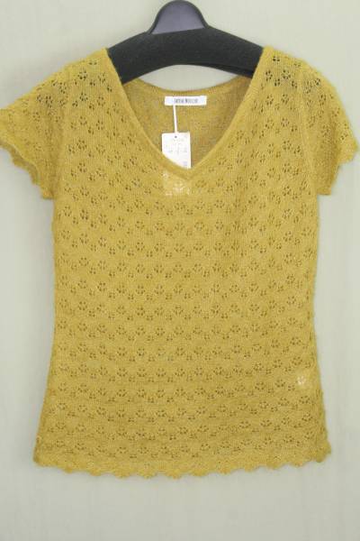 ♪♪新品・サンプル・ニット編み柄・袖口・裾スカラップ編み・カラシ・M♪♪a-87