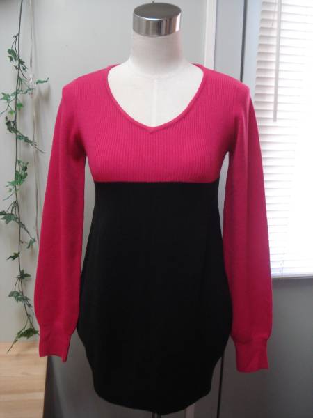 バイカラーの切換えしによる、美しいシルエットのロングニットになります(*^_^*)