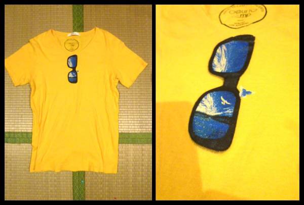 サングラス柄 だまし絵 Tシャツ 黄色 Mサイズ