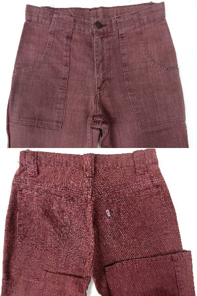 ビンテージ LEVIS リーバイス 希少 70S 白タブ ビッグE ベーカー デザイン フレア パンツ レア カラー バーガンディー マルーン コットン