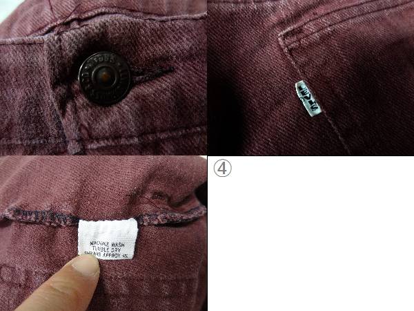 ほぼ存在しないといってもいいバーガンディー(マルーン)系のデニム生地です。素材は表記ありませんがコットン100%で間違いです。見たことがないかたが圧倒的だと思います。時間や労力を超越したレア度のある希少なパンツです。