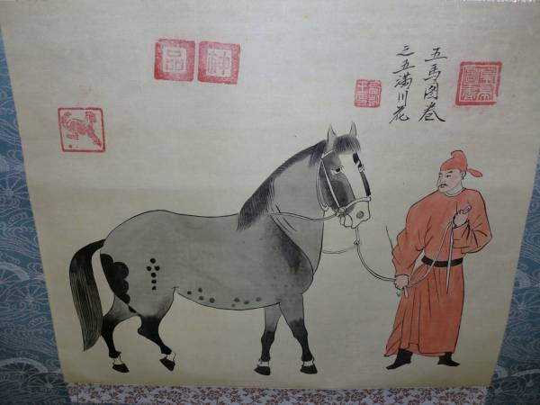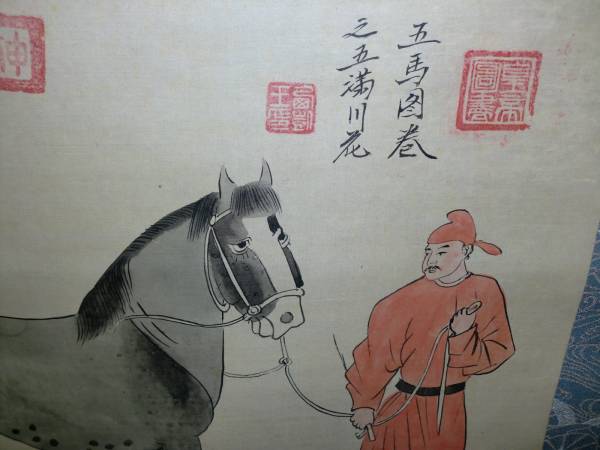 【印刷】永久保存版 希少品 掛軸 中国画 北宋 李公麟  五馬図巻 工芸品(印刷) 美品