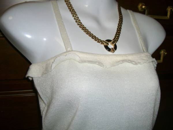 新品★ラメ スリット糸★白フリル 薄手ニット タンクトップ インナーに