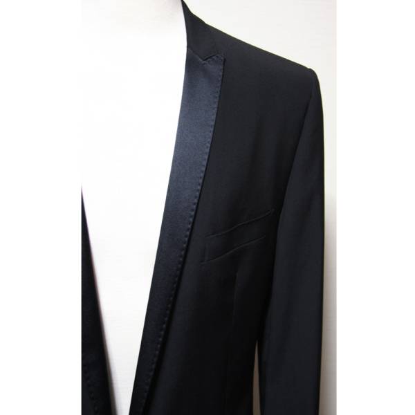 スパンのきいた高級ウール混生地にGOLDラインのとても美しいシルエットのタキシードジャケットです。