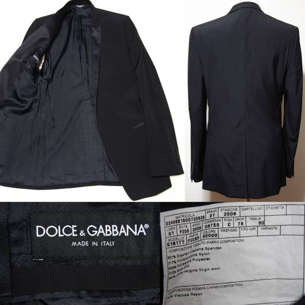 美品 DOLCE&GABBANA ナロー ピークドラペル タキシードジャケット GOLD 黒 50サイズです。