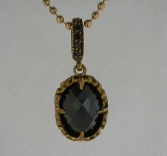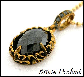 真鍮製Brass多面カットオニキス百合留めブラス ペンダント/Brassアクセ