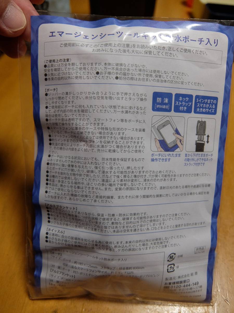 防水スマホポーチ ストラップ アルミブランケット ホイッスル
