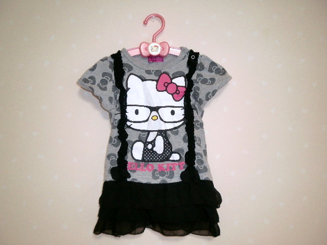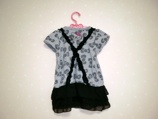Ωハローキティ Ω★80㎝★ 可愛い半袖Tシャツ 裾3段フリル ■グレー■ | |||