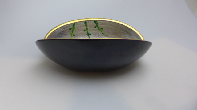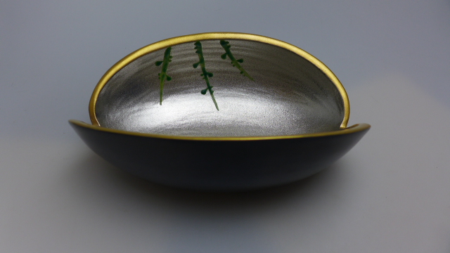 ★お買い得★半額以下★有田焼★黒釉内プラチナ絵会型向付★鉢★作家作★手描きです。