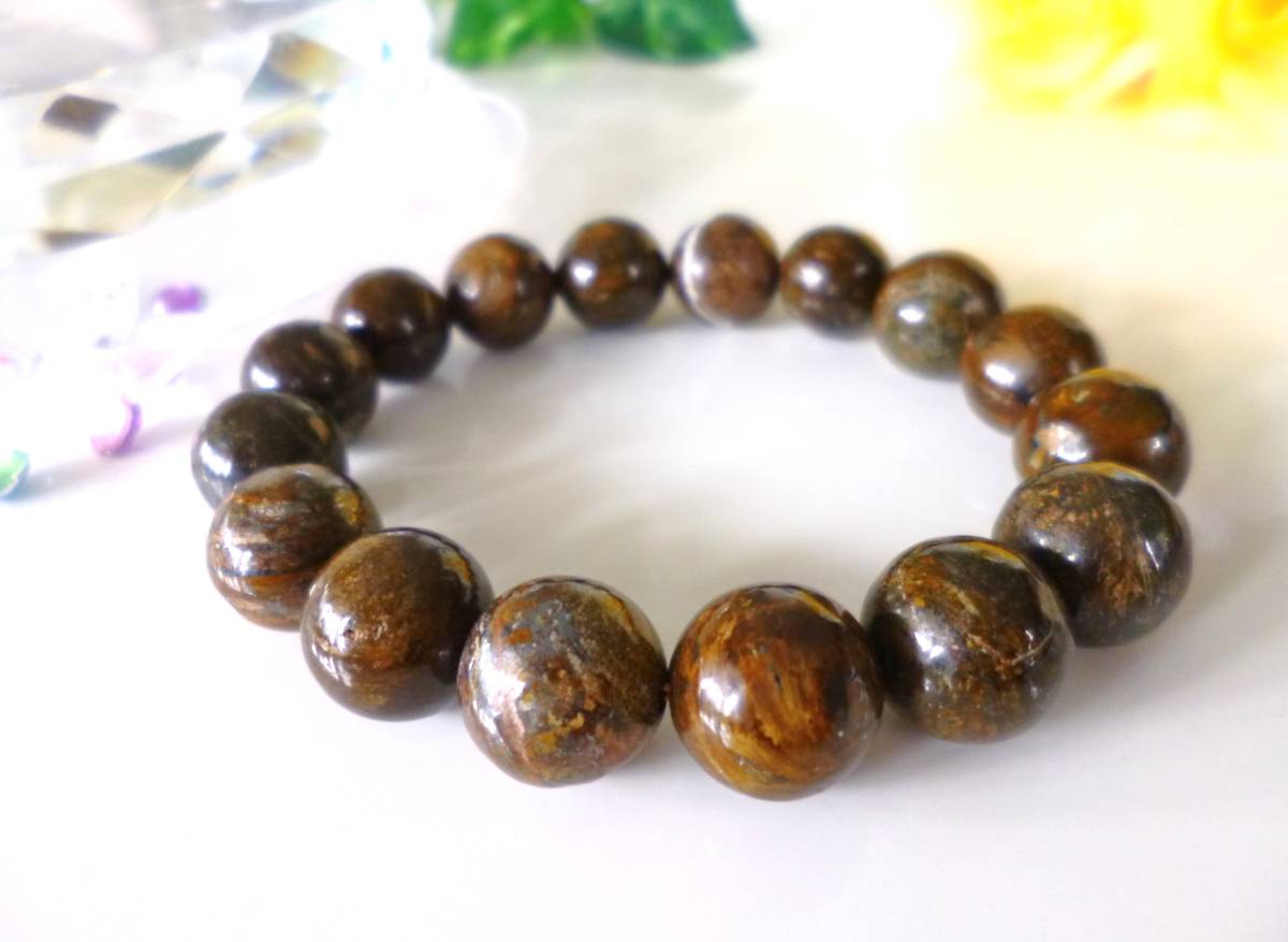 目標達成☆  ☆浄化☆  ☆守護石☆ 礼儀☆礼節☆ ☆誠実☆信頼☆  ☆判断力☆    ☆重厚感☆  ★ブロンザイト古銅輝石★   ☆大珠12mm☆   ★16cm