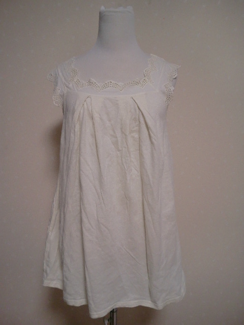 ★ THE EMPORIUM ★ 柄レース付き コットンチュニック M オフホワイト (0813)