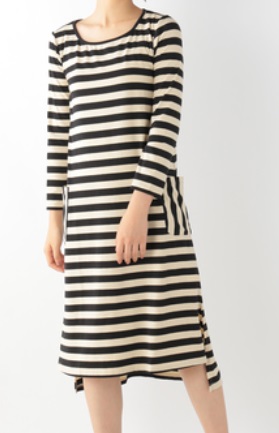 ホコモモラのランダムボーダーワンピースです。