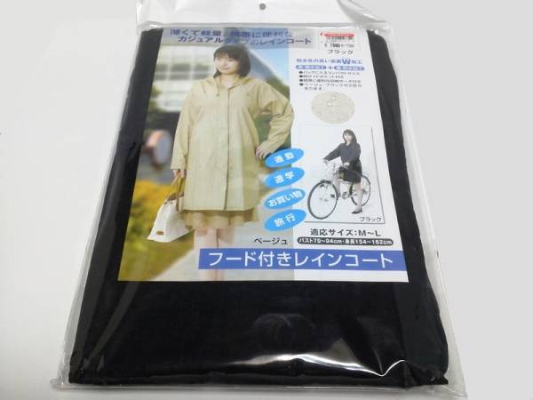 レディース レインコート ブラック シワ加工 M~L 154~162cm