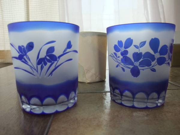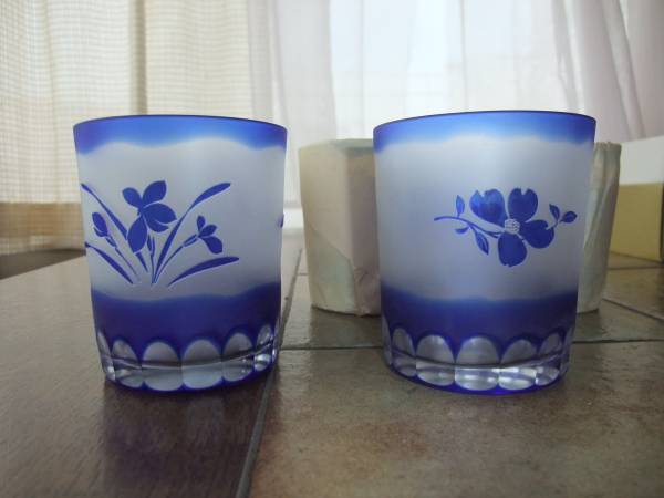 切子/キリコ 花柄 グラス セット 5客  未使用品