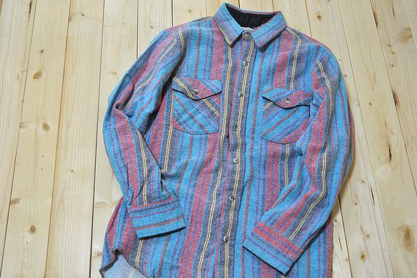 好配色◎USA製KEYカラフルストライプコットンネルシャツMサイズk246