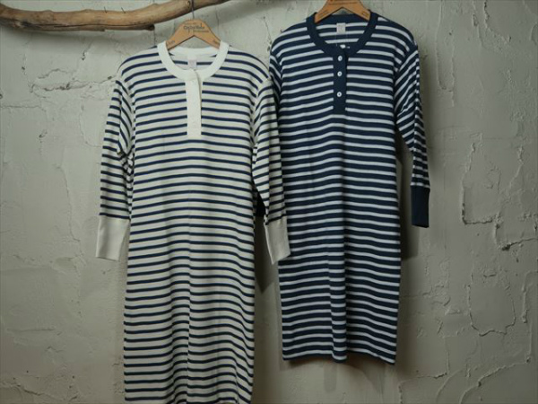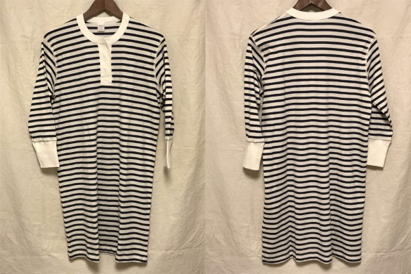 - 新品 ジチピ Gicipi ワッフル サーマル ヘンリーネック ワンピース WAFFLE LADYS DRESS STRIPE 1 生成り × ネイビー -
