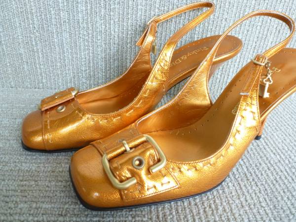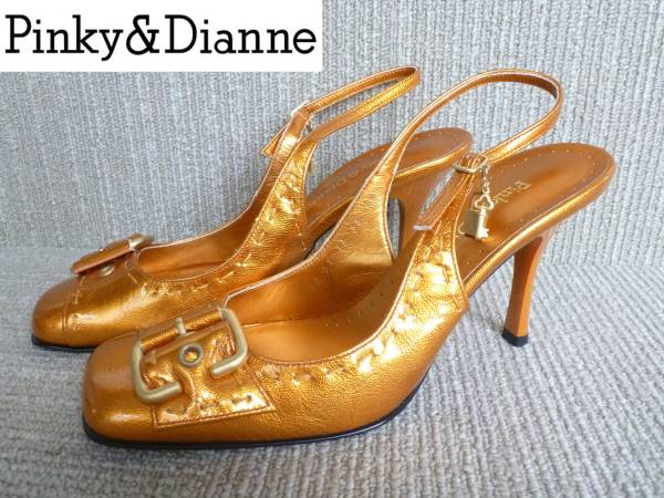 新品★PINKY&DIANNE(ピンキー&ダイアン)★★ オレンジ本革エナメル加工 サンダル 23.5