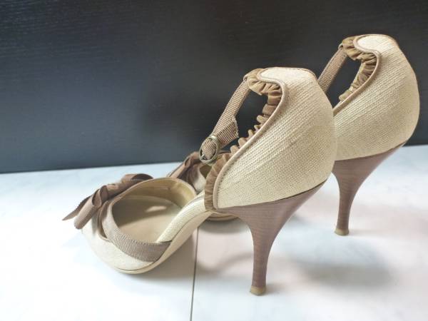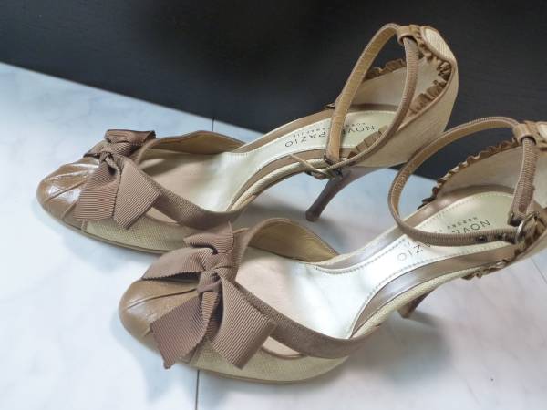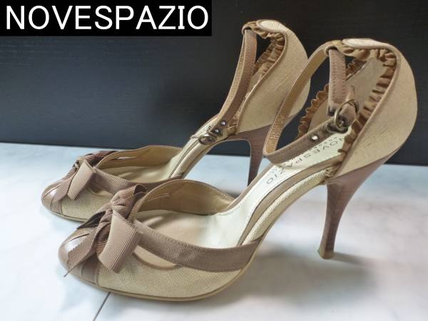 2.5万★NOVESPAZIO ノーベスパジオ★ 本革×布 茶×ベージュ パンプス サンダル 24