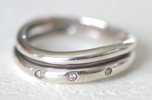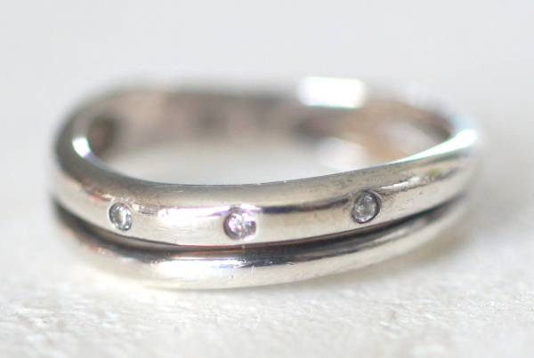 シルバー925製 ダイヤ風石3石付き シンプル 2連風リング