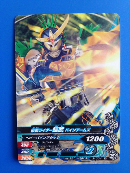 仮面ライダー、ガンバライジングの第3弾から、No.004《仮面ライダー鎧武・パインアームズ》の登場です。発送は、普通郵便を利用します。(特にご希望のない場合)おとりまとめも可能ですが、送料に変動する場合がございます。また、送料のご請求は、自宅での計量を基準にご請求させていただいておりますので、実際の金額と差異が出る場合もございます。予めご了承ください。他にも多数出品中です。まとめてこの機会にいかがでしょうか?ご質問お待ちしております。