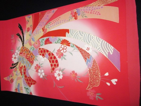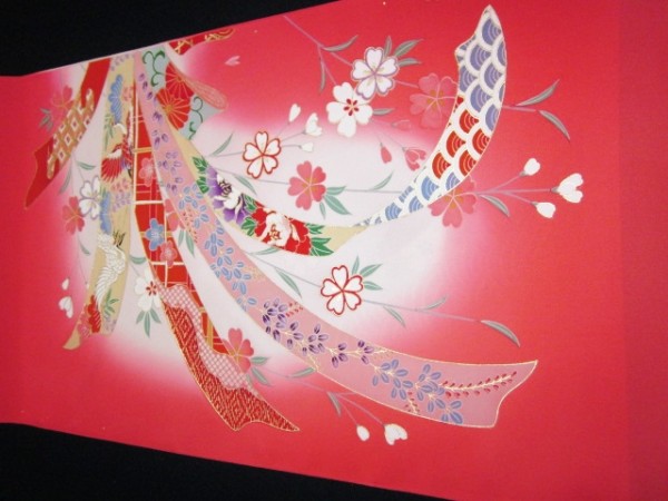 | 【京わぎれ】正絹一つ身(初着)はぎれ 片袖分120cm 束ねのし 朱ピンク 少難品Aタイプ③ | ||||