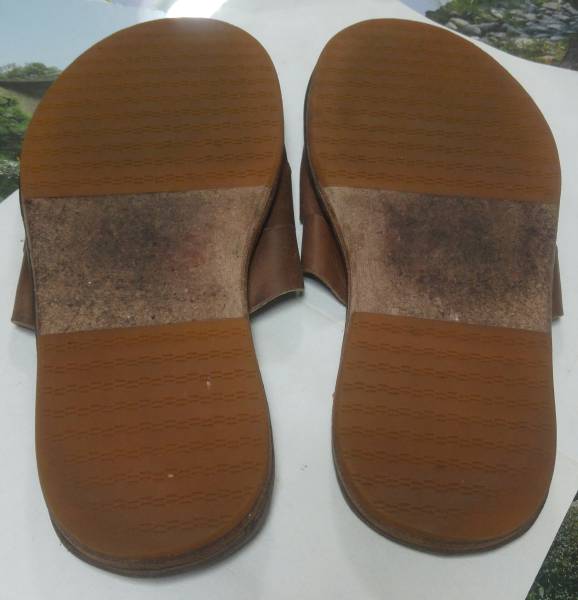 踵外側のソールが0.5mm位減ってます。