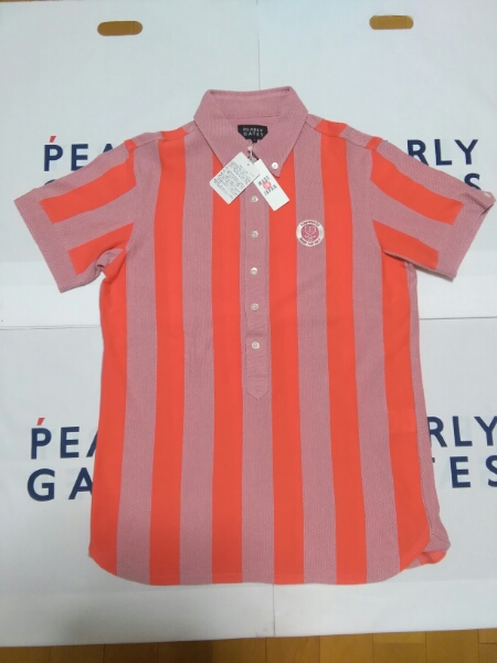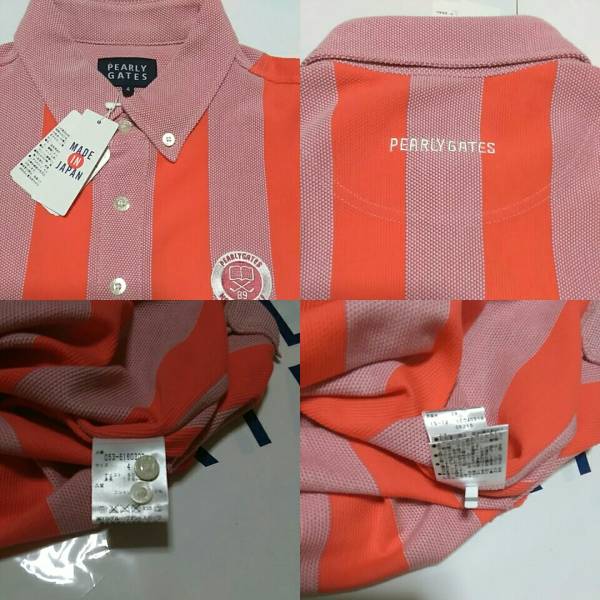 正規品 識別タグ付き パーリーゲイツ ピンクにオレンジのストライプ鹿の子ポロシャツ 4