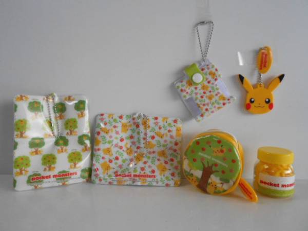 1.イヤホンコードリール 2.シルエットバンド(3種×4個) 3.キーカバー 4.コインケース 5.パスケース たて 6.パスケース よこ ◇ほのぼのかわいいピカチュウがいっぱい! |