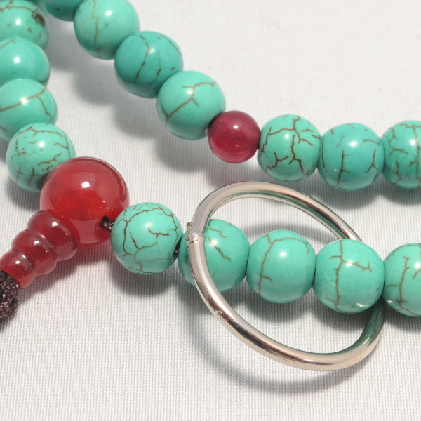 商品説明 | 主玉(ハウライトトルコ石) 約 8mm 天玉(瑪瑙) 約 6mm 向玉(瑪瑙) 約 8mm 親玉(瑪瑙) 約 10mm 輪の引き伸ばし長さ 約 41cm |