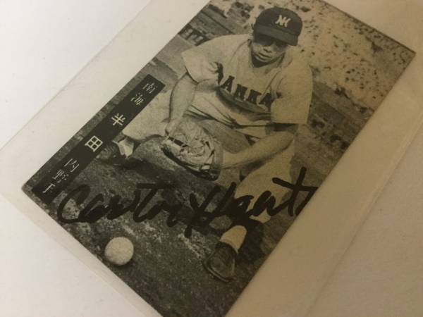 1958-61年南海、1962中日に所属していた来日外国人カールトン半田の直筆サインカードです。