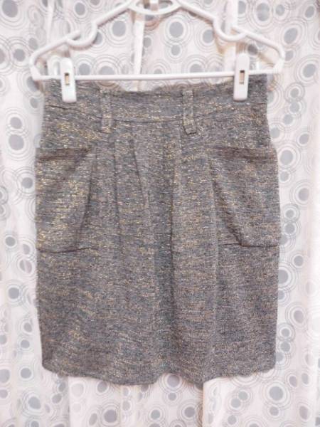 【300円均一】 BEARDSLEY ビアズリー グレー×ゴールドラメ スカート F 【 大人カッコいい トレンド 洗練 美品 】 〒320