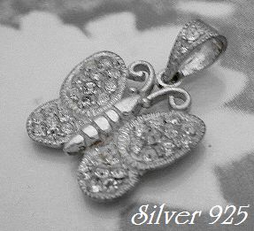 シルバー925銀の蝶ジルコニア付ジュエル ちょうちょ ペンダント