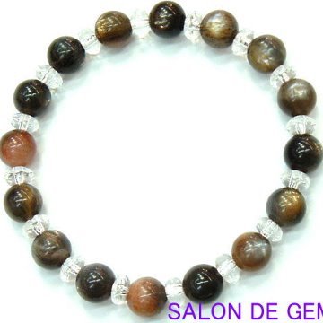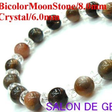 【希少】【恋人達の石】【高級天然バイカラームーンストーン/天然クリスタル 風水・開運ブレスレット】8.0-6.0mm/約15cm