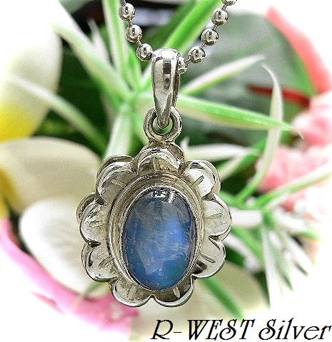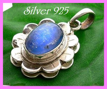 シルバー925銀の天然石ムーンストーン[ブルー]花型ペンダント