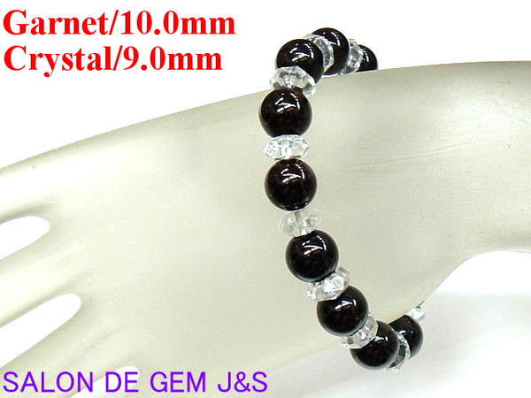 【新品】【上質ワインレッド】【高級天然ガーネット/天然クリスタル デザインブレスレット】10.0mm/15cm