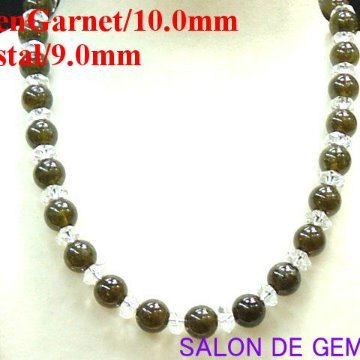 【新品】【高級天然グリーンガーネット/天然クリスタル デザインネックレス】G10.0mm/C9.0mm/42cm